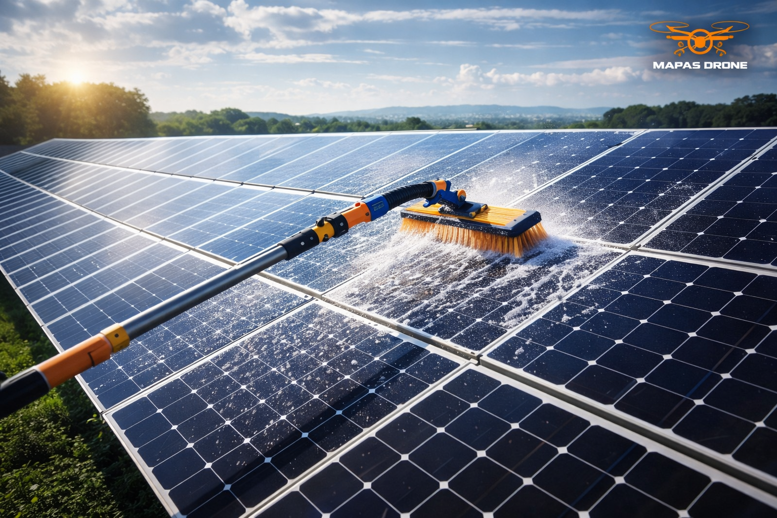 Além disso, drones podem realizar a limpeza sem danificar os módulos, utilizando tecnologias específicas de pulverização controlada.