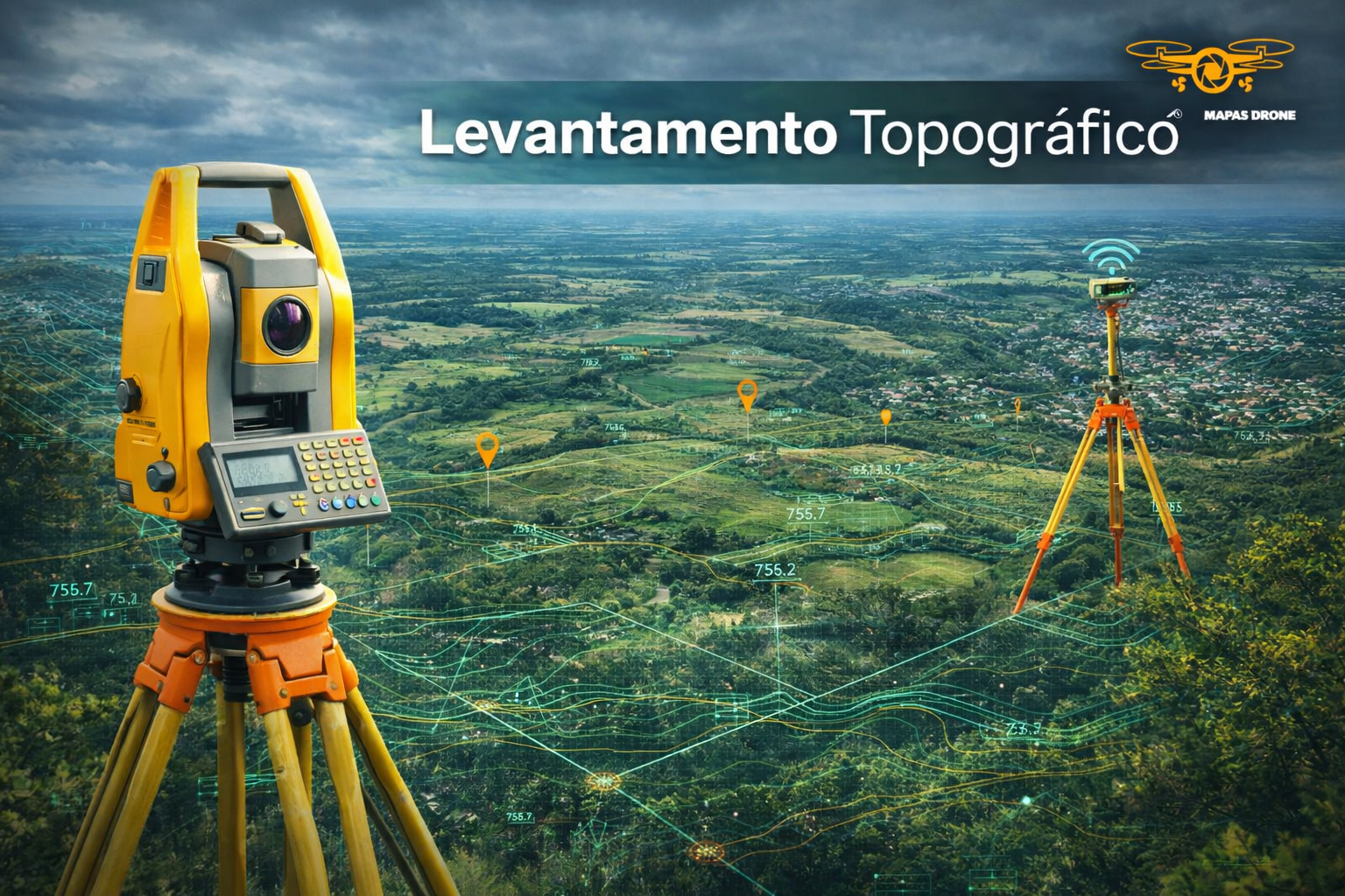 Esqueça apenas o teodolito antigo. Hoje, o levantamento topográfico para projetos complexos utiliza:
